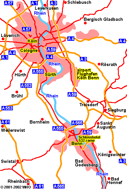 | Road map Cologne Koln Bonn airport Rhine River 3